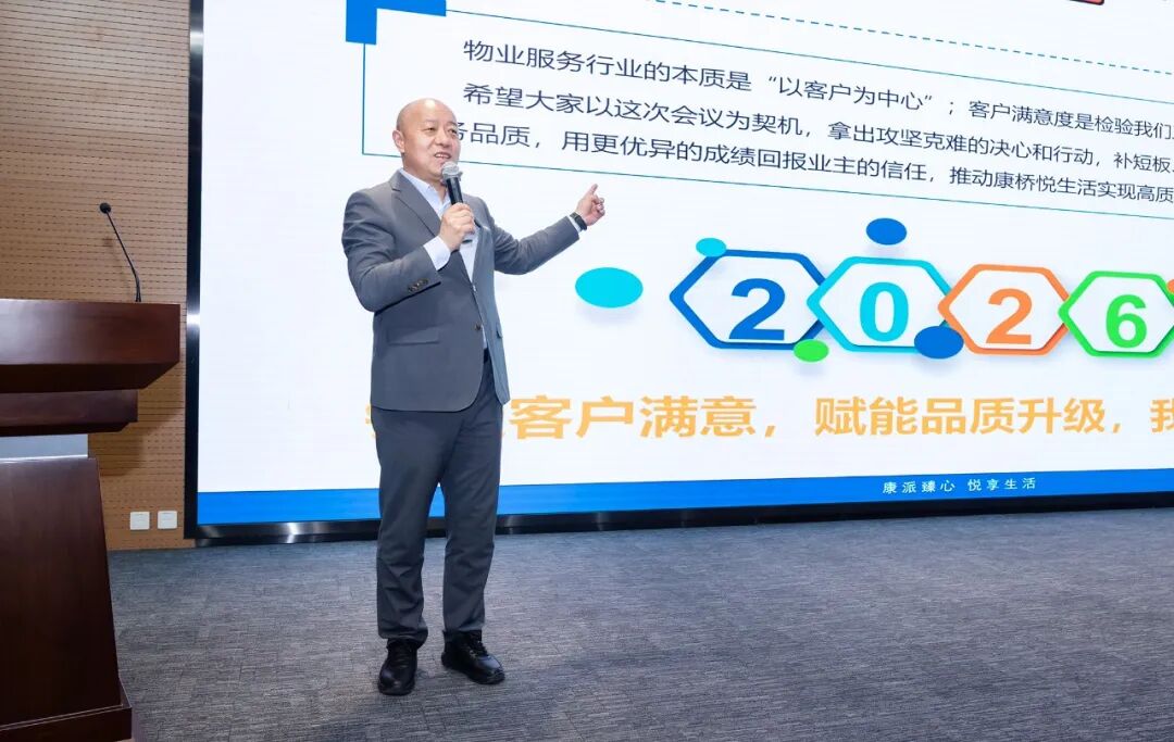 此次会议,既是2025年度品质深耕与满意度提升的答卷集中检阅,更是凝聚全员共识、锚定攻坚航向的动员誓师。2026年,康桥悦生活将构建“集团总部统筹领航、各战区及合资公司聚力推进、各项目精细落地”的三级联动作战体系,层层压实责任、环环紧扣协同。我们将以直面挑战的勇气、勇渡难关的决心,以更高标准淬炼服务硬功,以更实举措深耕社区治理,以更优服务回应客户期盼,矢志不渝走好高质量发展之路,为推动物业服务行业现代化、助力城市美好人居建设贡献更大力量。